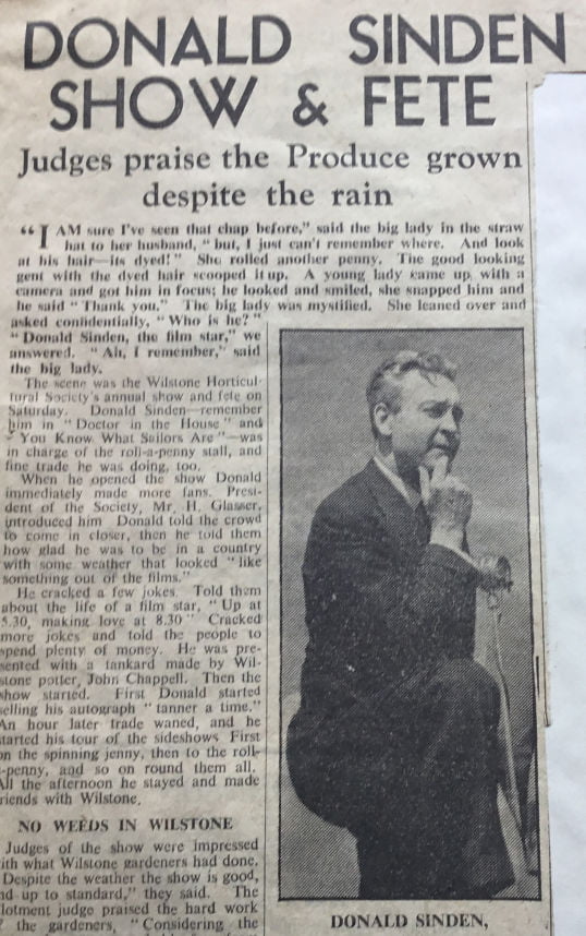 Donald Sinden is the first celebrity to open the Annual Show in Wilstone (later celebrities included Wilfred Brambell (Steptoe), Neil McCallum and Norman Rossington).